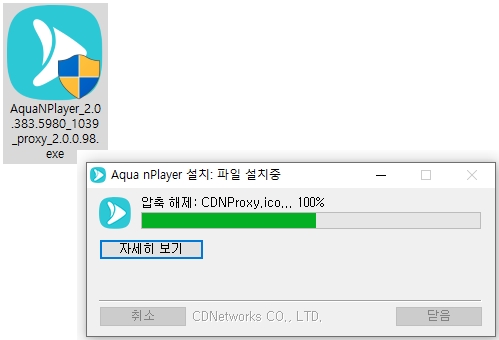 아쿠아 플레이어 설치 오류시, 제어판으로 들어가서 [프로그램 추가/삭제]로 들어간 후 이전에 설치된 aquaplayer를 제거 후 설치하시기 바랍니다. [다운로드] 링크를 클릭하여 인스톨 파일을 다운받을 수 있습니다.