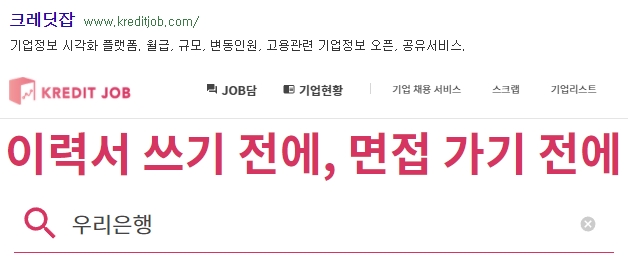 제 지인의 지인이 우리은행에 다니는데 연봉이 꽤 괜찮다고 들었습니다. 그래서 우리은행을 입력하여 해당 기업에 대한 정보를 알아보기로 했습니다.