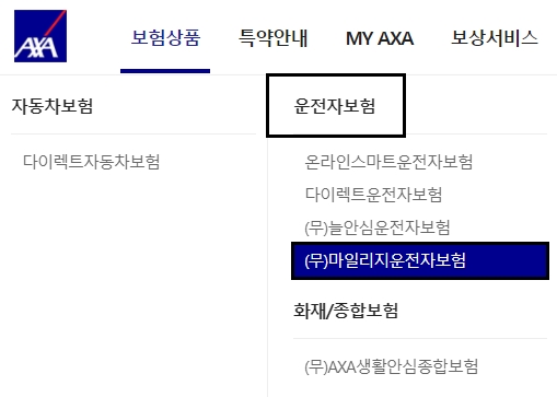 오늘은 교보악사 손해보험의 마일리지 운전자보험 상품에 대해서 알아보았습니다. AXA 홈페이지에 접속해서 [보험상품] 메뉴의 [운전자보험] 항목을 선택합니다. 그리고 하위항목들 중에서 [마일리지운전자보험] 항목을 눌러주시면 되겠습니다.