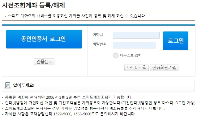 스피드 계좌조회를 하실 수 있습니다. 인터넷뱅킹에 가입한 개인이나 기업고객은 계좌등록이 가능하며, 기업인터넷뱅킹인 경우에는 마스터 아이디로만 가능합니다.