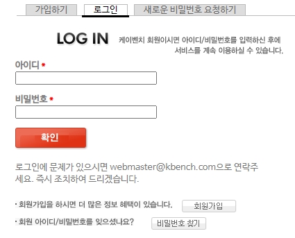 마지막으로는 케이벤치 로그인에 대하여 간단히 말씀드리겠습니다. 회원이시면 아이디와 비밀번호를 입력하고 서비스를 계속 이용할 수 있습니다. 로그인에 문제가 있는경우 위의 그림에 언급되어 있는 이메일주소로 연락하시면 즉시 조치를 받을 수 있어요. 회원가입을 하시면 더 많은 정보혜택을 제공합니다.