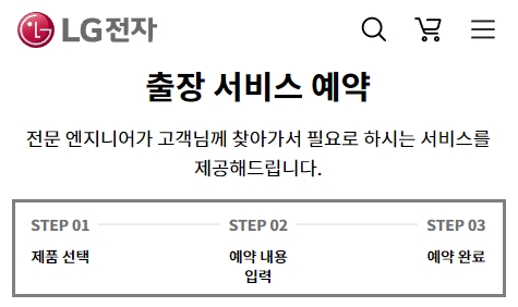 출장서비스 예약을 하면, 전문 엔지니어가 고객님께 찾아가서 필요로 하는 서비스를 제공합니다. 제품을 선택하고, 예약내용을 입력한 다음, 예약을 완료할 수 있어요.