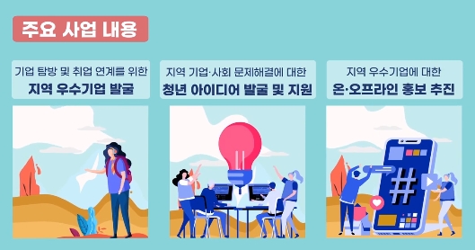 - 지역 기업/사회 문제해결에 대한 청년 아이디어 발굴과 지원