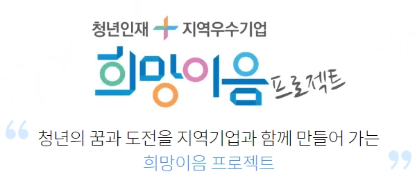 희망이음 프로젝트는 2012년부터 이어져 오고 있는 대국민 프로젝트이며, 기업의 내일과 청년의 내일을 응원합니다. 산업통상자원부가 담당하고 한국산업기술진흥원이 전담하여 진행하고 있는데요, 열정적인 청년인재를 기다리는 지역의 우수기업과 지역의 좋은기업을 찾고자 하는 청년인재를 연결하는 소통창구입니다.