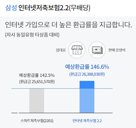 오늘은 삼성생명 적금 또는 삼성생명 저축보험 상품인 인터넷저축보험2.2 무배당 상품에 대한 안내를 드리도록 하겠습니다. 재테크를 할때에는 목적에 맞는 단기 및 장기 자금준비 계획이 필요하다고 하는데요, 비과세 혜택과 연복리 효과는 재테크에서 체크해봐야 할 항목입니다. 삼성 인터넷저축보험은 한달만 유지해도 이자까지 더해서 100%이상 환급해드린다고 하네요.