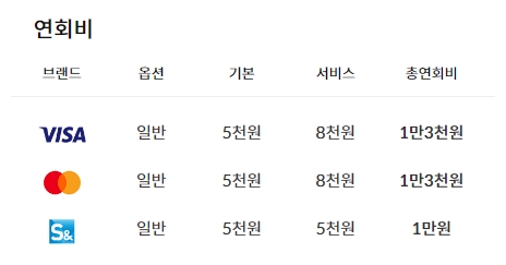 또한 단기카드대출, 장기카드대출, 연회비, 각종수수료, 이자, 포인트사용, 지방세, 선불카드 충전, 무이자 할부 거래는 제외됩니다. 연회비 정보는 아래를 참고하시구요, 가족카드 연회비는 없으며, 가족카드 단독발급시에는 본인카드 발급과 동일하게 연회비가 부과됩니다.