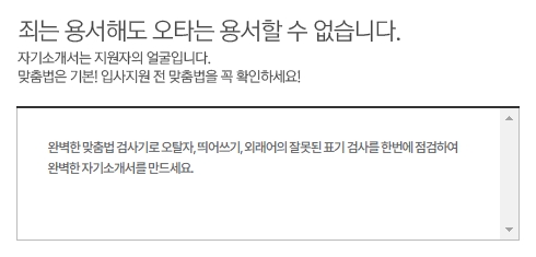죄는 용서해도 오타는 용서할 수 없다고 하는데요, 자기소개서는 지원자의 얼굴이며 맞춤법은 기본이라고 합니다. 입사지원을 하기전에 꼭 체크해보시기 바랍니다. 오탈자, 띄어쓰기, 외래어의 잘못된 표기 검사를 한번에 점검하여 완벽한 자기소개서를 만들 수 있습니다.