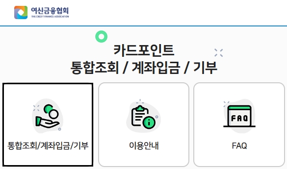먼저 여신금융협회 카드포인트 통합조회 계좌입금 사이트(여신금융협회 카드포인트 통합조회 계좌입금 (cardpoint.or.kr))에 접속합니다.