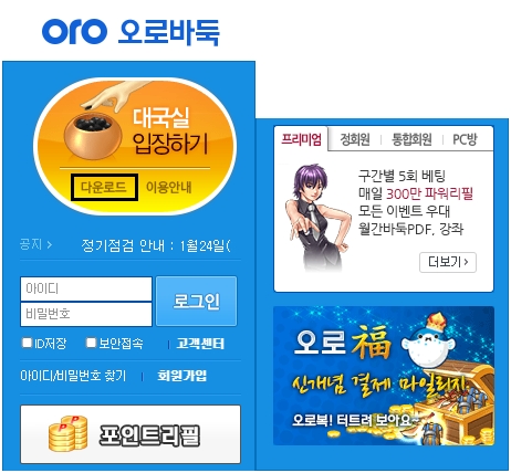 실행 바로가기 아이콘은 바탕화면에 설치됩니다. 실행화면은 위의 그림과 같은데요, 아이디와 비밀번호를 입력하여 로그인 후 이용할 수 있습니다. 제가 접속했을 당시 접속자가 무려 9600명 정도였는데요, 서버는 한국/중국/일본/대만이 있으며 그중에서 한국 오로서버에 있는 사람들의 숫자가 가장 많습니다.