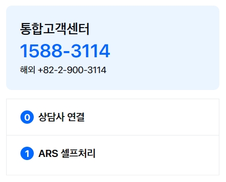 통합고객센터 전화번호는 1588-3114번, 해외에서 이용시 82-2-900-3114번입니다. 상담사 연결시간은 평일 09시~18시, ARS서비스는 매일 08시~23시30분, 보험료 납입사항 조회는 매일 24시간입니다.