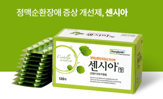 동국제약의 센시아는 건강한 국민생활을 지향하며 지난 2012년에 국내에 출시된 정맥순환장애 증상 개선제입니다.