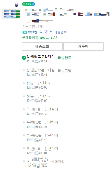 [배송조회] 버튼을 누르시고 [상세보기] 항목을 누르시면 배송과정을 상세히 확인할 수 있는데요, 제가 구매한 제품의 경우 배송이 시작된지 대략 이틀만에 배달이 완료되었습니다.