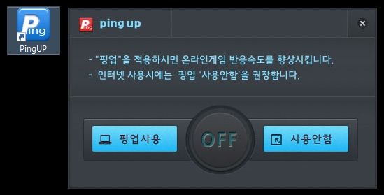 핑업은 누구나 무료로 다운받아 설치하여 사용할 수 있고, 네트워크 설정 변경을 통하여 온라인 게임의 반응속도를 향상시켜줍니다.