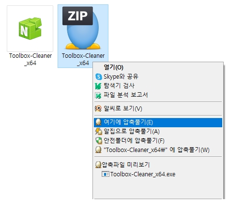 파일은 압축 형태로 제공되기에, 압축을 풀어서 실행해야 합니다. 네이버 클리너를 이용하시면 PC에 저장되어 있는 오래된 시스템 파일이나 인터넷 사용기록을 간단히 삭제할 수 있습니다.