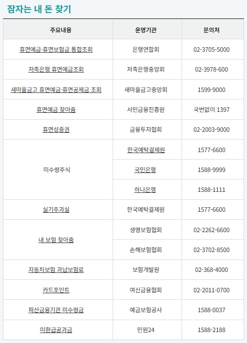 은행, 보험사, 증권사, 우체국 등에서 거래한 이후 장기간 찾아가지 않아서 잠자고 있는 내 돈을 빠짐없이 가장 빨리 찾을 수 있습니다.