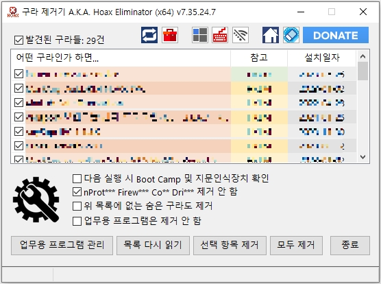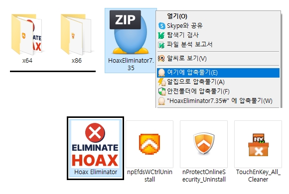 Hoax Eliminator라는 이름을 가지고 있는 구라제거기는 여러가지 보안 프로그램들을 한번에 삭제할 수 있는 소프트웨어입니다.