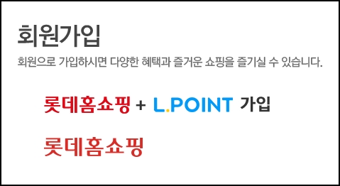 L.POINT 회원으로 가입하시면 롯데홈쇼핑을 포함한 롯데계열의 다양한 서비스를 하나의 통합 ID로 편리하게 이용하실 수 있으며, L.POINT 통합회원이 되시면 온/오프라인 어디서든 자유롭게 L.POINT를 적립하거나 사용할 수 있습니다. 전체 롯데계열 사이트로 모두 가입되는 것은 아니고, 본인이 가입을 희망하는 롯데계열사의 회원약관에 동의한 경우에만 가입됩니다.