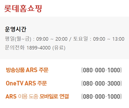 롯데홈쇼핑 고객센터 전화번호는 1899-4000번입니다. 운영시간은 평일 09시부터 20시까지이고, 토요일에는 09시부터 13시까지 운영합니다.