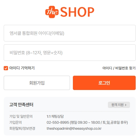 기타 가입 및 일반문의는 1:1채팅상담으로 하실 수 있고, 전화문의는 02-550-8995번으로 하실 수 있으며, 운영시간은 평일 09:30~18:00 및 토/일/공휴일 휴무입니다. 회원탈퇴 또는 정보변경을 원하시는 분들은 이메일 theshopadmin@theeasyshop.co.kr로 문의하시기 바랍니다.